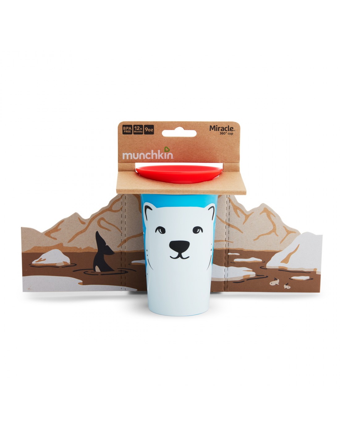Εκπαιδευτικό κύπελλο Munchkin Miracle 360° 12m+ 266ml πολική αρκούδα για να πίνει το μωρό σας από όλη την περίμετρο 360° χωρίς να στάζει από πουθενά. Το καπάκι κλείνει αυτόματα, μόλις το μωρό σταματήσει να πίνει. Είναι ιδανικό για χρήση καθ’ οδόν καθώς αποφεύγονται οι ανεπιθύμητες διαρροές.
