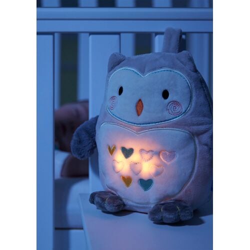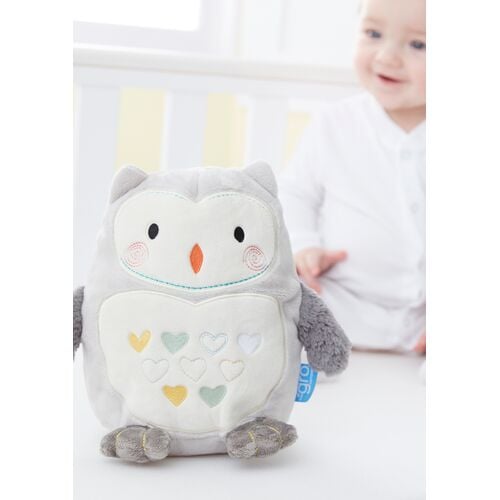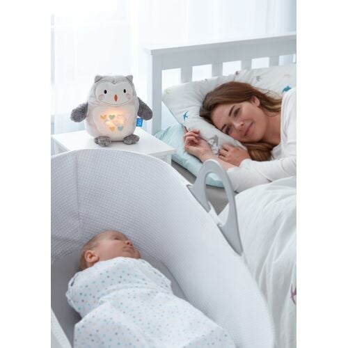 Η Ollie η κουκουβάγια αναπαράγει 6 χαλαρωτικούς ήχους (χτύπους καρδιάς, σταγόνες βροχής, στατικό λευκό θόρυβο, 3 νανούρισματα) και με μια απαλή, ζεστή λάμψη δημιουργεί ένα αξιολάτρευτο ήρεμο περιβάλλον που θα βοηθήσει το μωρό να κοιμηθεί. Ο αισθητήρας κλάματος ακούει έξυπνα το μωρό και επανενεργοποιείται για να διατηρήσει την ηρεμία του.